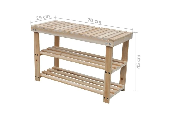 Denna 2-i-1 skohylla i trä kommer att hålla dina skor prydligt organiserade och borta från golvet. Dessutom erbjuder ovansidan dig en plats att sitta på medan du tar på eller av dig skorna. Den är därför perfekt att ställa i hallen!