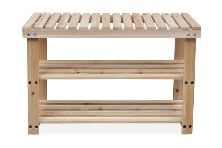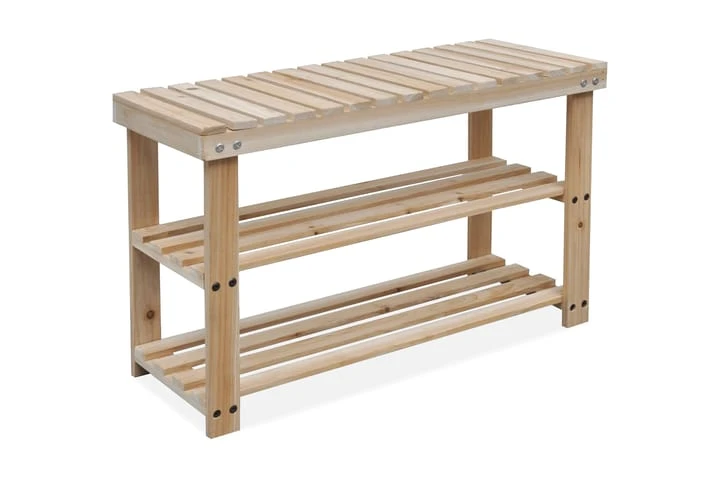 Detta 2-i-1 skoställ i trä håller dina skor prydligt organiserade och borta från golvet. Dessutom erbjuder ovansidan dig en plats att sitta på medan du tar på eller av dig skorna. Det är perfekt att ha i hallen!