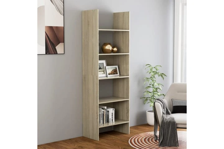 Denna bokhylla är tillverkad i spånskiva, vilket säkerställer dess stabilitet, hållbarhet och långvariga service. Den har 5 rymliga fack som erbjuder gott om förvaringsutrymme för att förvara böcker, tidskrifter och andra dekorativa föremål. Bokhyllan är enkel att rengöra med en fuktig trasa.