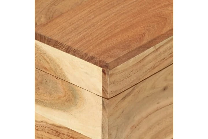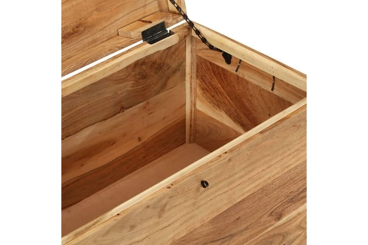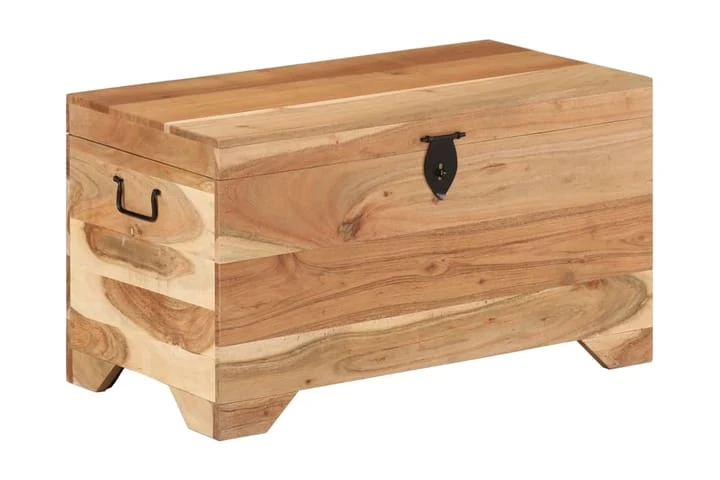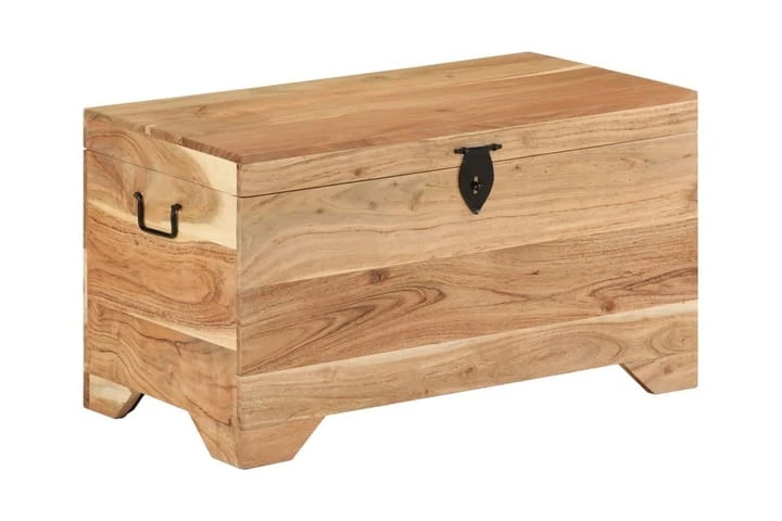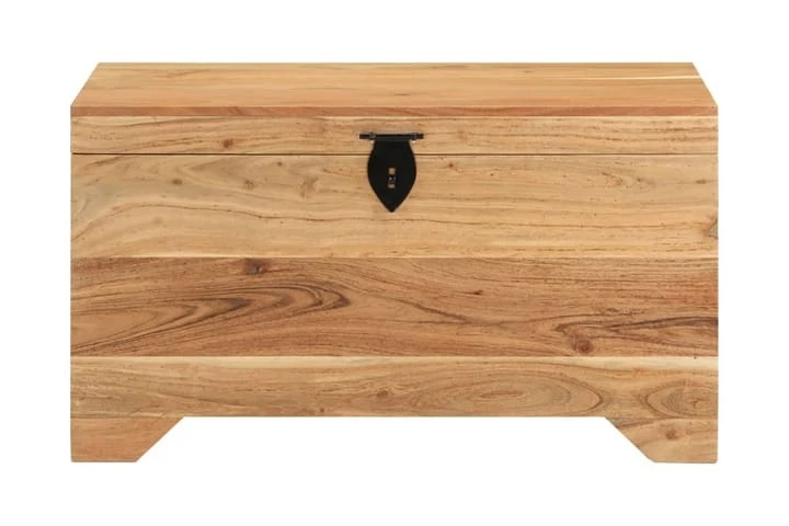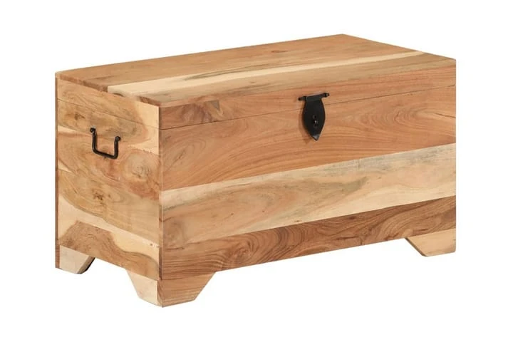 Denna förvaringslåda är tillverkad av grovt mangoträ som är massivt, stabilt och elegant. Hantverket ger den en riktigt retro stil. Den har också gott om utrymme för kläder, tidningar, böcker, leksaker, verktyg och andra tillbehör. Den har en spärr på framsidan och handtag på sidorna. Med sin stabila ovansida kan denna trälåda även användas som soffbord, vardagsrumsbord, sidobord, avlastningsbord, etc. De vackra ådringarna gör varje möbel unik.