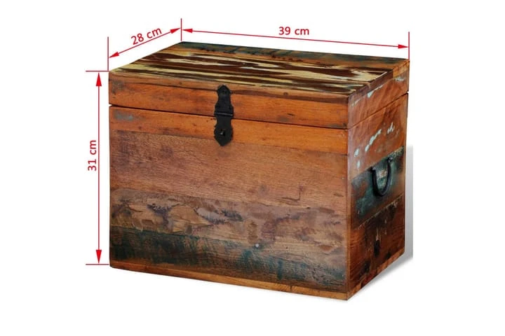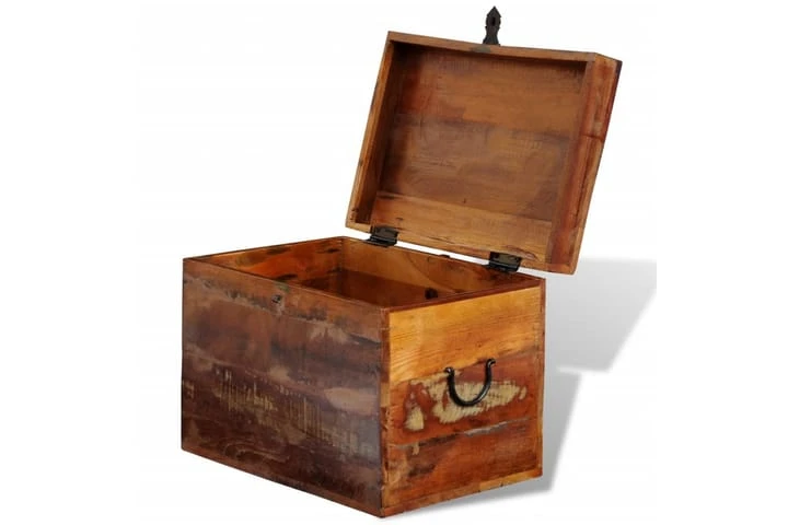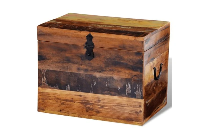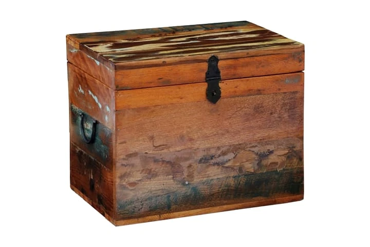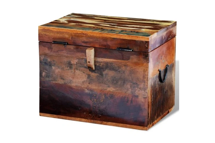 Lådan är tillverkad i återvunnet trä vilket betyder att varje möbel är unik och skiljer sig något från de andra. Möbler tillverkade av återvunnet trä har karaktärsdrag från olika träslag såsom teak, mangoträ, akacia, etc. Återvunnet trä är massivt, stadigt, hållbart och vackert. Spikhål och synlig ådring ger möbeln en historia och bjuder in ännu en generation att genomsyra den med sin alldeles egen sådan. Den här möbeln kommer att visa att du förstår koncept såsom resursskydd, miljöskydd och hållbar utveckling.