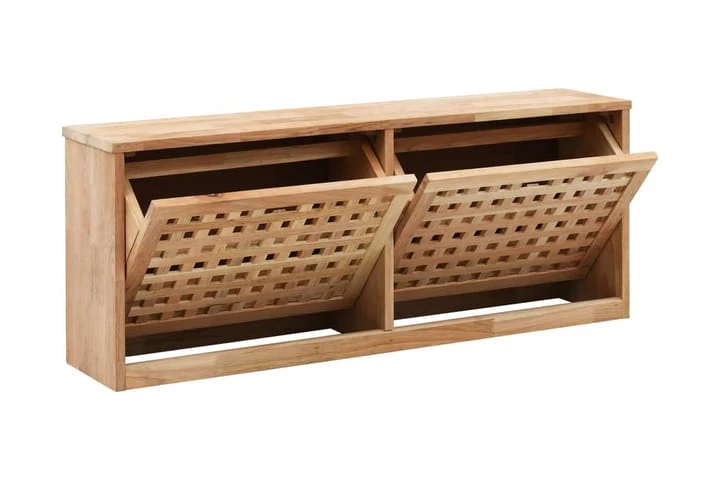 Skohyllan har gott om förvaringsutrymme för upp till sex par skor. Du kan sitta bekvämt på bänken medan du tar av eller på dig skorna. Skobänken är tillverkad i massivt valnötsträ och plywood och är väldigt stadig och hållbar. Den starka hallbänken är mycket praktisk när du vill förvara dina skor på ett välordnat och snyggt sätt.