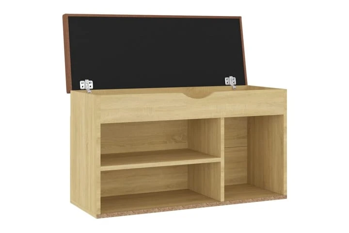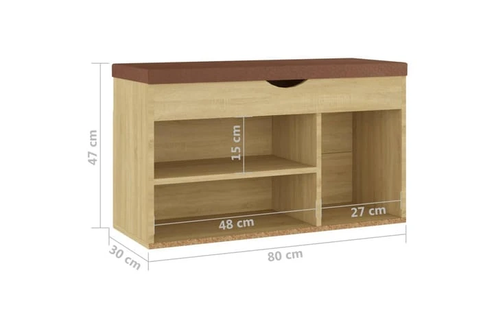 Skobänken har gott om plats att förvara skor. Den robusta ovansidan med avtagbar dyna låter dig sitta bekvämt när du tar på eller av skorna. Dessutom är den lätt att rengöra med en fuktig trasa. Förvaringsbänken är en mycket praktisk plats för att förvara skor snyggt.