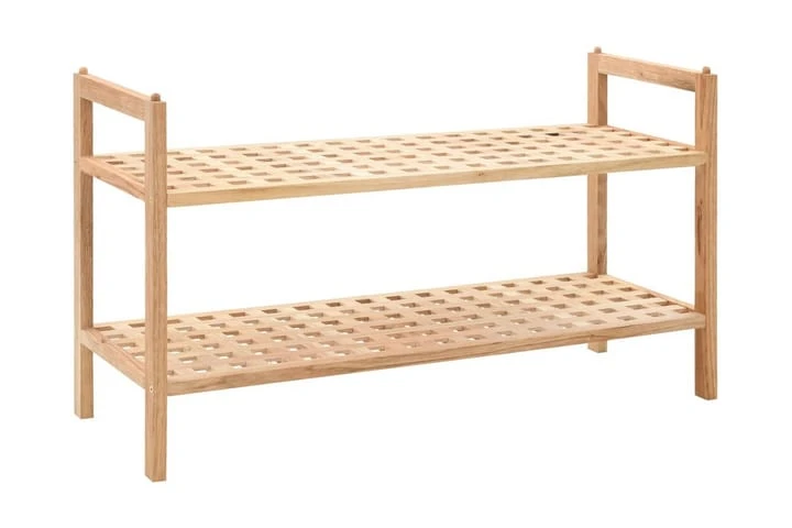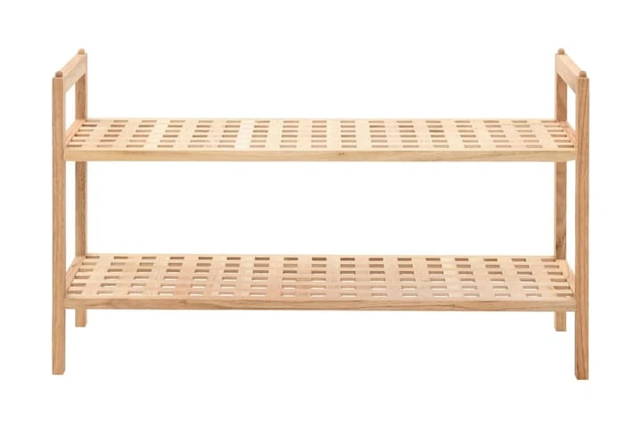 Skohyllan i trä har 2 hyllor, vardera med en plattform med rutdesign för att placera dina skor och hålla dem ventilerade. Skohyllan är platsbesparande tack vare sin kompakta design.