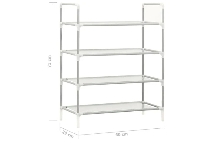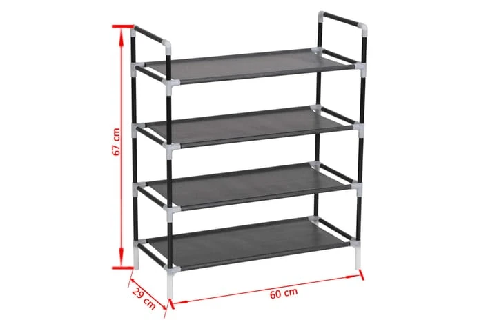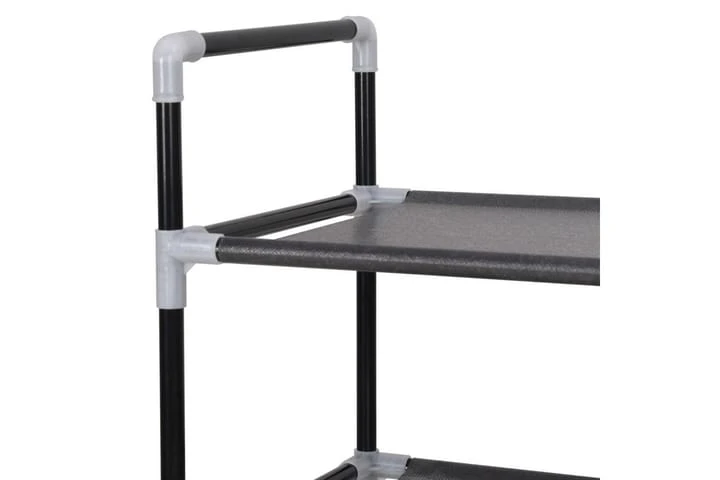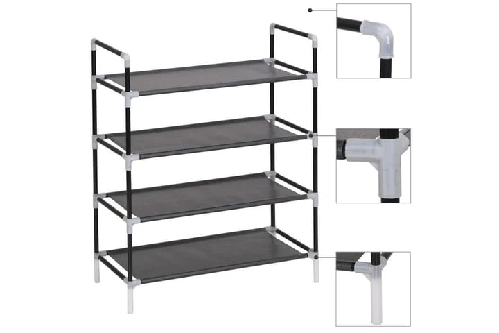 Den har en rörformad metallram, som är lätt men robust, vilket gör skostativet ganska hållbart och enkelt att flytta runt. Den har fyra generösa hyllor tillverkade i miljövänligt non-woven tyg och har gott om utrymme för att hålla dina skor organiserade och ur vägen.