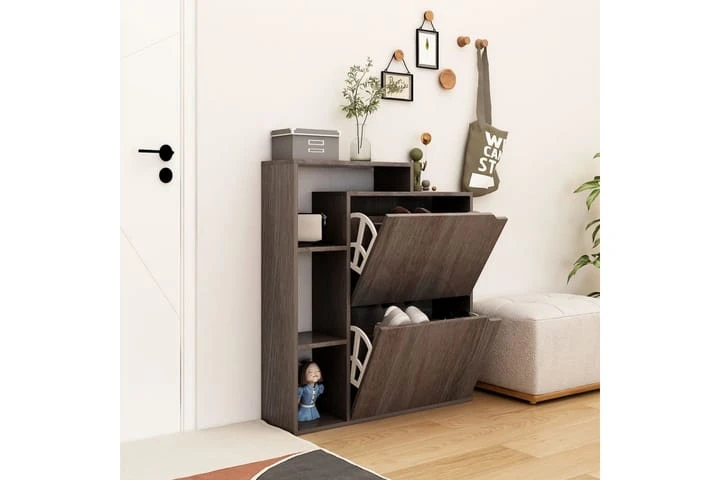 Detta skoskåp är hållbart och robust. Det har 2 fack och ger gott om förvaringsutrymme för att hålla dina skor välorganiserade. Det kan också användas i stor utsträckning som displayställ, växtställ med mera.